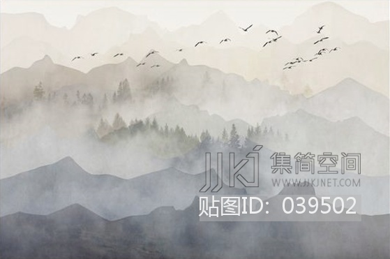新中式山脉床头沙发背景画屏风画壁纸壁布 (15)材质贴图下载