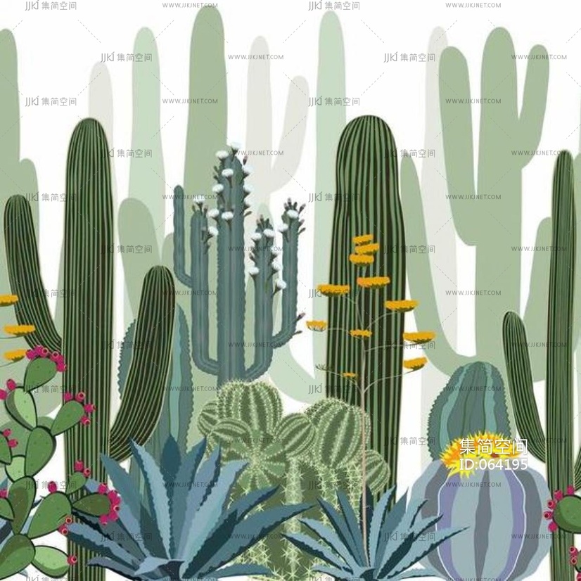 现代 北欧壁纸 仙人掌植物材质贴图下载