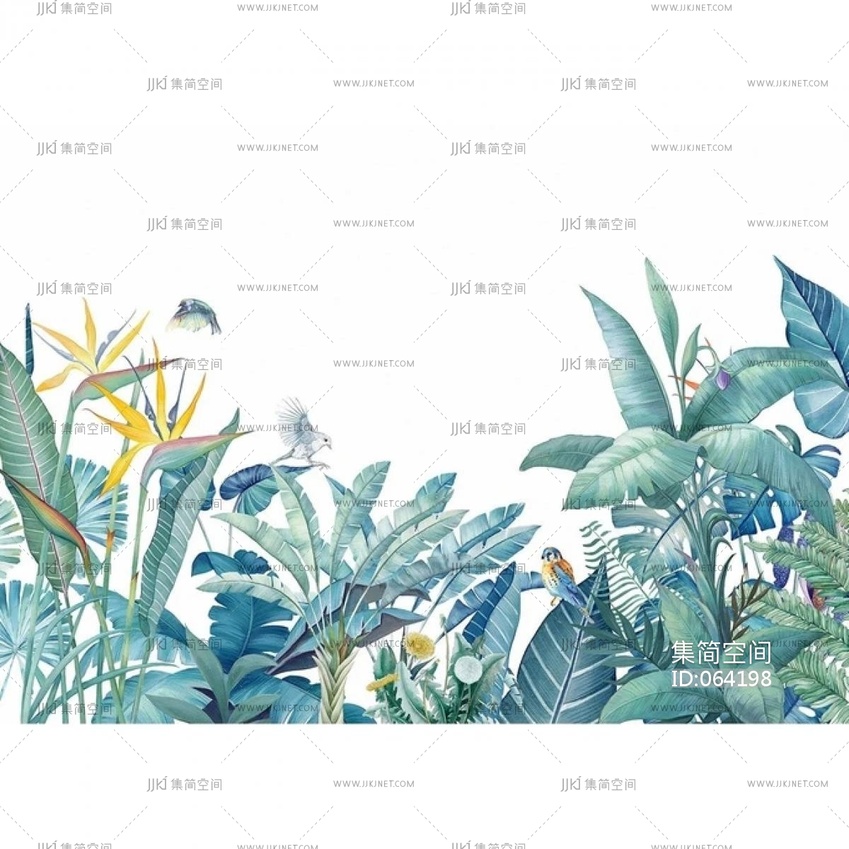 墙酷 现代东南亚热带植物动物绿色壁画材质贴图下载