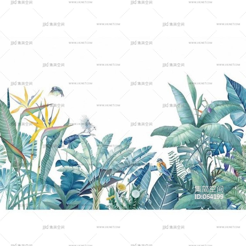 墙酷 现代东南亚热带植物动物绿色壁画材质贴图下载