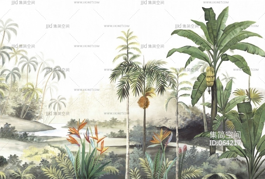 美式欧式法式植物油画壁纸壁布背景画 (5) 材质贴图下载 [贴图ID:064217]