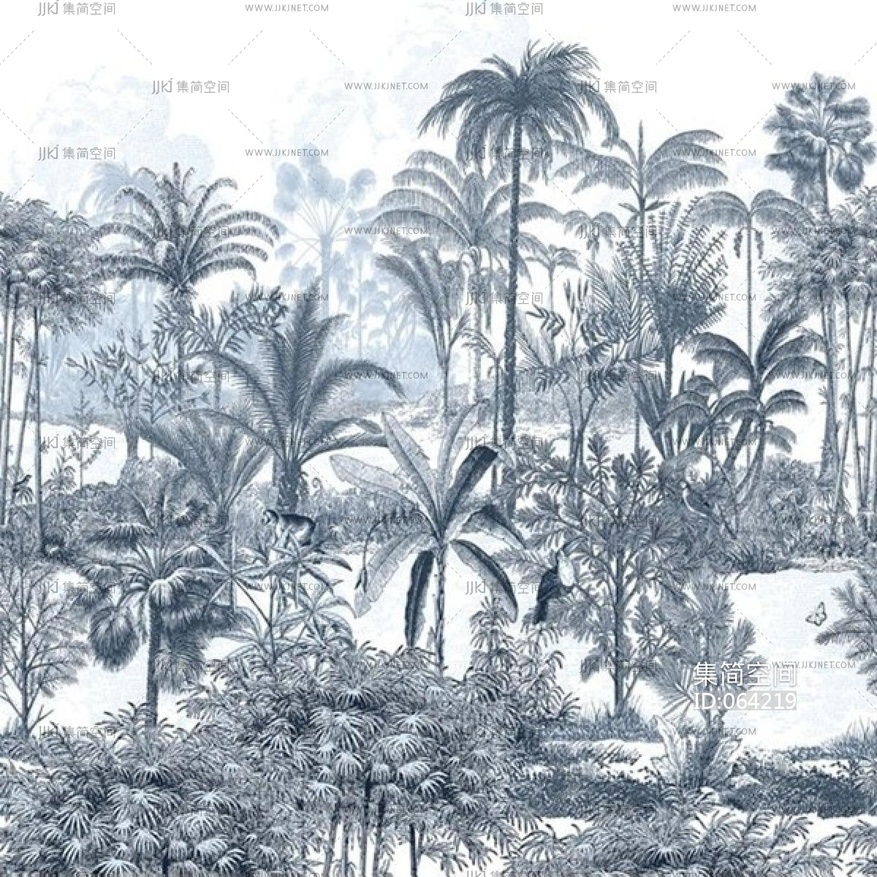 美式欧式法式植物油画壁纸壁布背景画 (3) 材质贴图下载