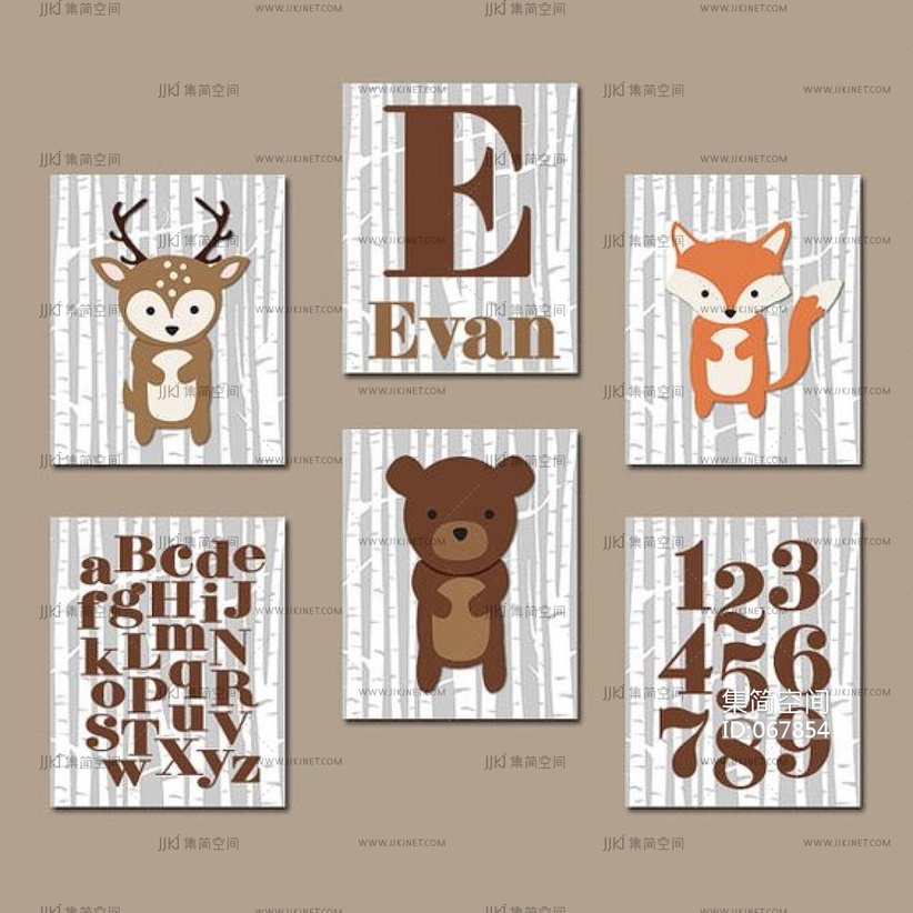儿童房女孩房卡通动物挂画装饰画 (12) 材质贴图下载 [贴图ID:067854]