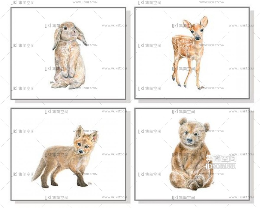 儿童房女孩房卡通动物挂画装饰画 (8) 材质贴图下载 [贴图ID:067858]