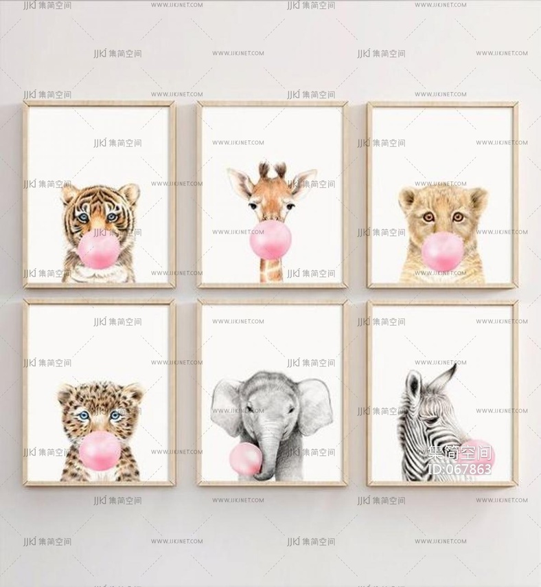 儿童房女孩房卡通动物挂画装饰画 (3) 材质贴图下载 [贴图ID:067863]