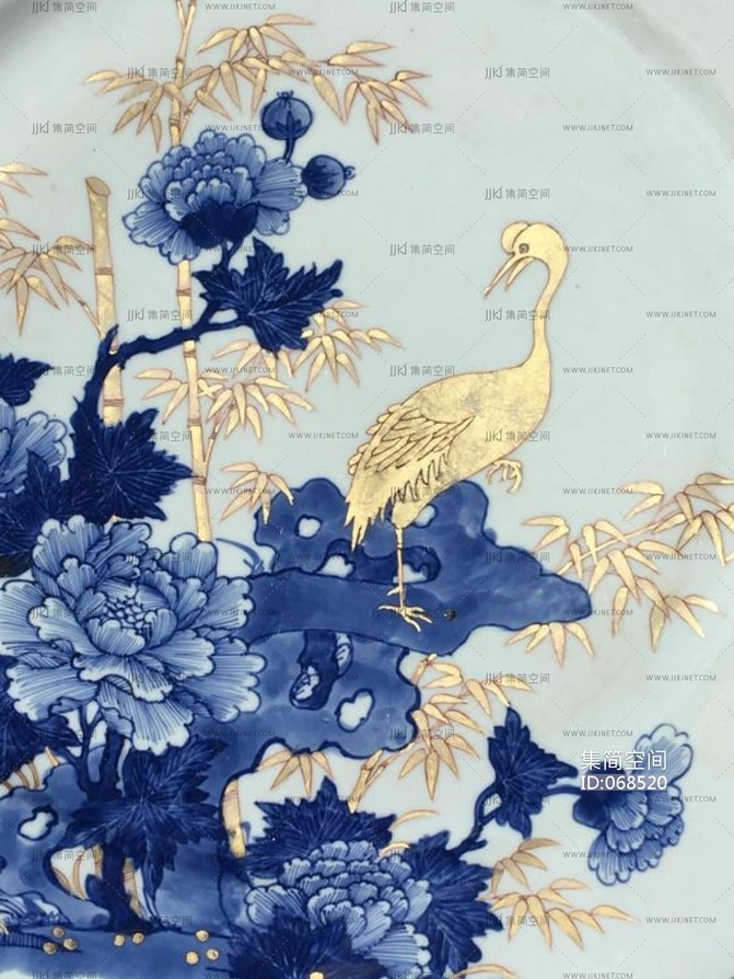新中式青花瓷花鸟植物壁纸壁画装饰画贴图材质贴图下载