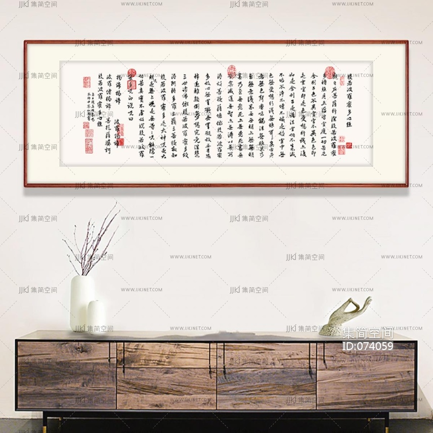 般若波罗蜜多心经书法字画装饰画中式客厅卧室书房禅意佛像壁挂画 材质贴图下载 [贴图ID:074059]