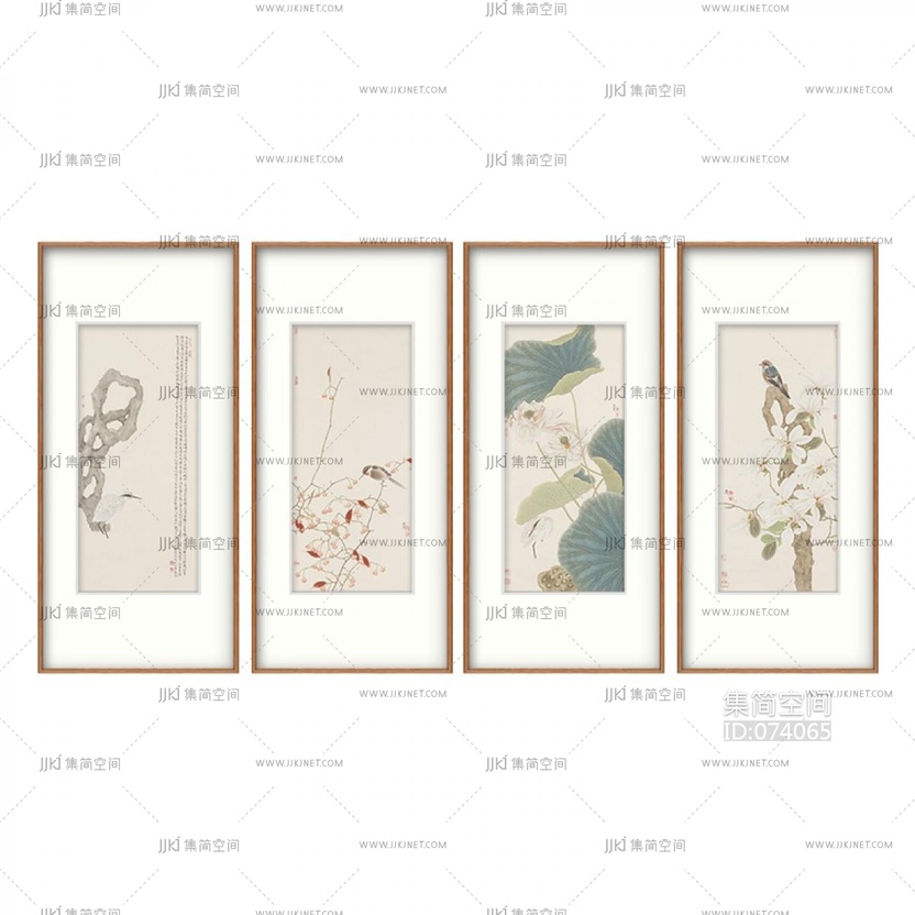 橙舍 新中式客厅装饰画 现代餐厅多联风景挂画骆兆虎国画 四季屏 材质贴图下载 [贴图ID:074065]
